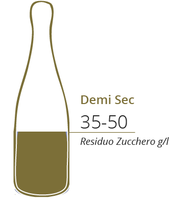 La quantità di zucchero dello sciroppo di dosaggio determina le caratteristiche dello spumante, da demi-sec a extra brut in ordine crescente del loro contenuto zuccherino, si distinguno in: pas dosé(senza zucchero), extra brut,brut, extra dry, dry- demi-sec.